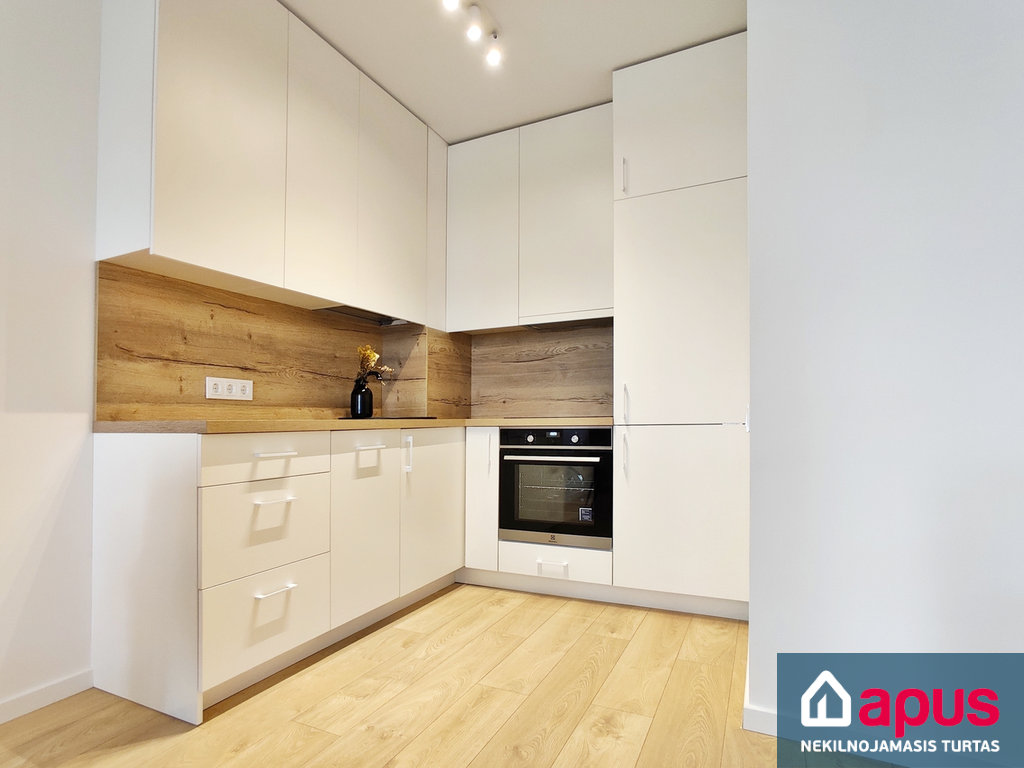- bute yra su visi reikalingi baldai bei buitine technika (šaldytuvas, orkaitė, kaitlentė, indaplovė, gartraukis, skalbyklė/džiovyklė).